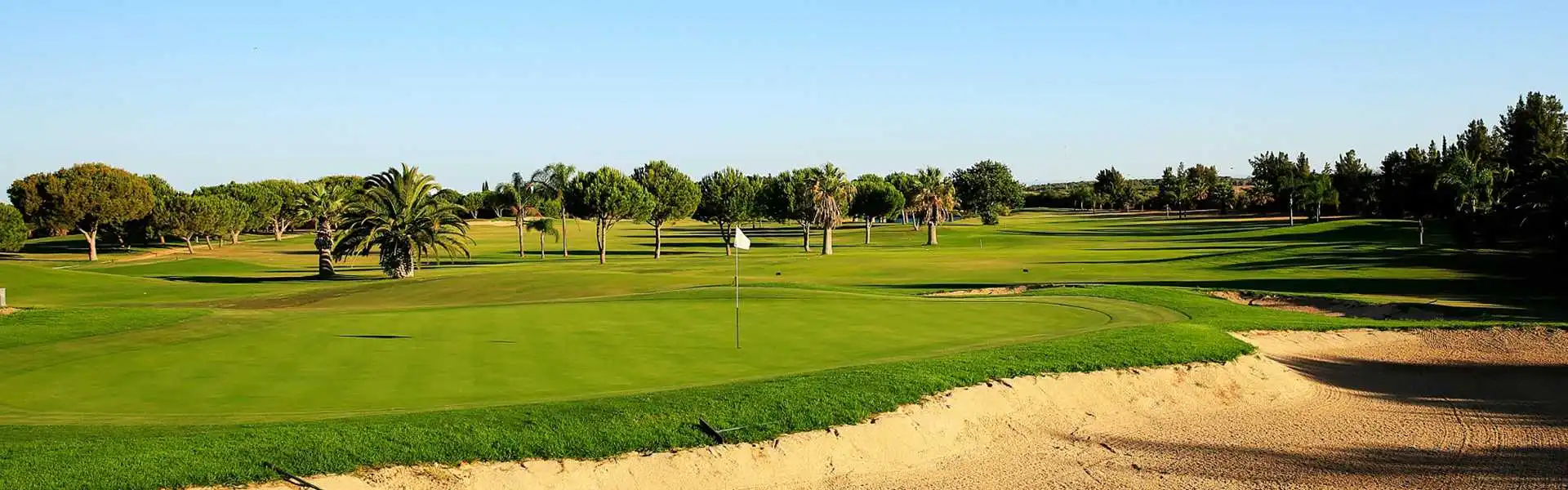 Dieser Platz mit seinen vielen Wasserhindernissen und wenigen Bäumen ist in den Tiefen des Küstengebietes gelegen und unterscheidet sich erheblich von den anderen in Vilamoura.